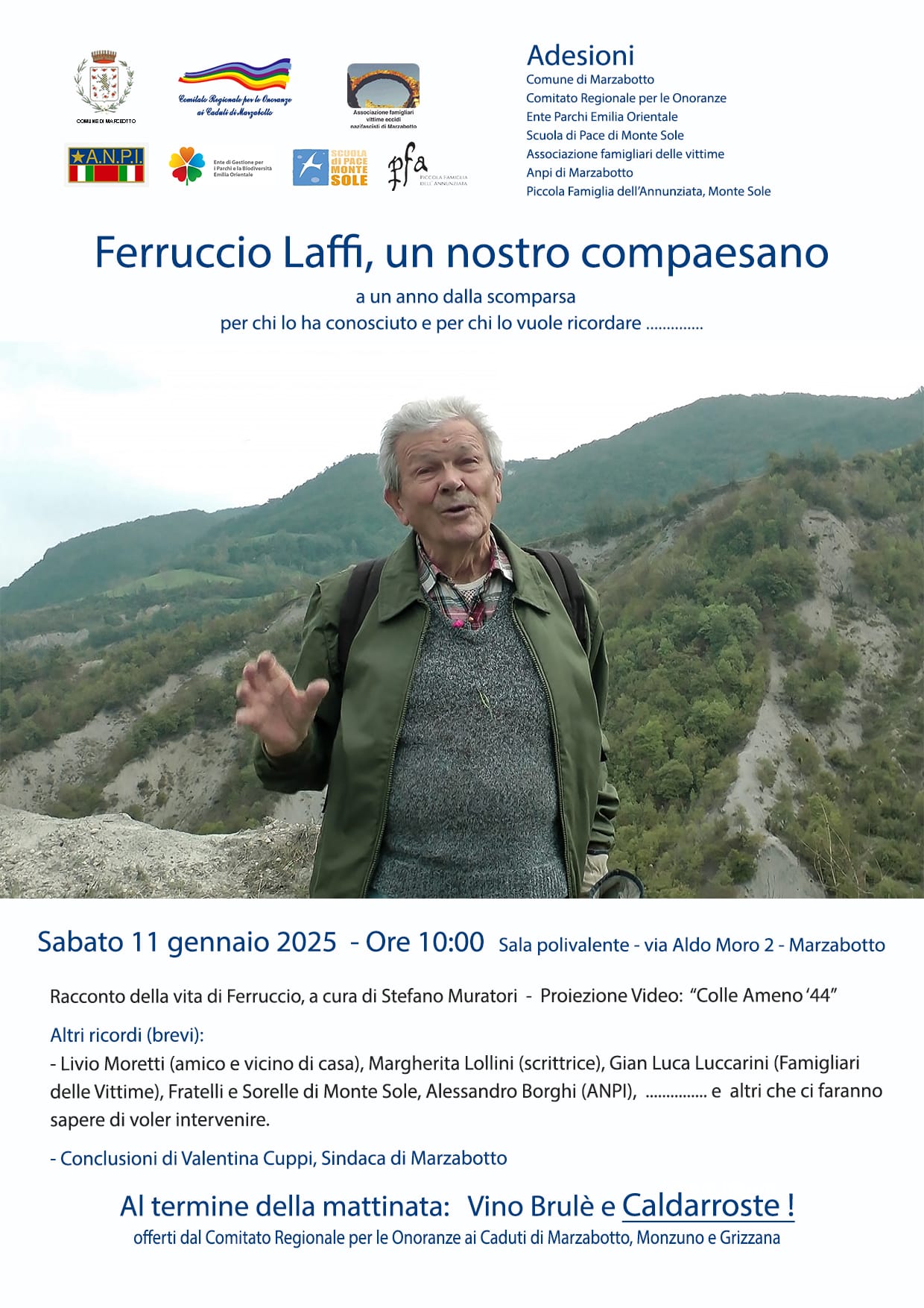Un appuntamento per tutti e tutte noi molto importante. Ricorderemo insieme la figura di Ferruccio Laffi, ad un anno dalla sua scomparsa. Un’assenza che si fa sentire ogni giorno, ma che ci sprona incessantemente ad impegnarci per promuovere quei valori e quella memoria che lo hanno reso un amico, un compagno e una figura centrale dei nostri territori.
